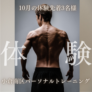小倉南区パーソナルトレーニングから10月体験のお知らせです。