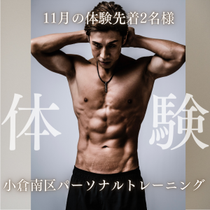 小倉南区パーソナルトレーニングから11月体験のお知らせです。
